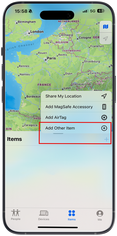 Click the button on ProTag and tap โAdd Other Itemโ